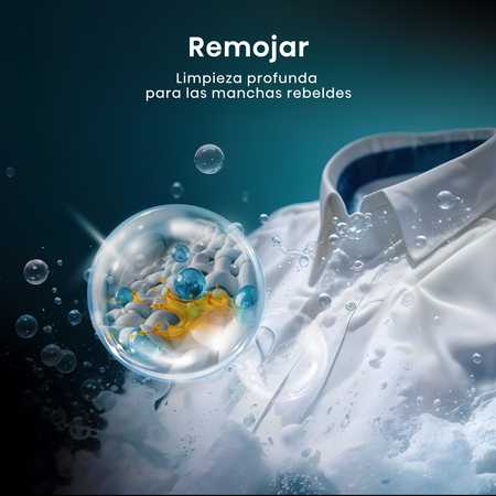 La función de Remojo permite hasta 60 minutos de prelavado en agua rica en detergente, suavizando y aflojando las manchas rebeldes para una limpieza más eficaz y profunda.