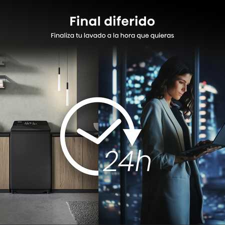 El panel de control trasero permite a los usuarios operar sin necesidad de agacharse en gran medida. Además, la distancia entre el tambor y la parte frontal de la lavadora es mínima, y el diámetro del tambor es amplio, lo que facilita la extracción de la ropa. A diferencia de algunos modelos de gran capacidad de la competencia, no es necesario agacharse ni esforzarse para alcanzar la ropa.