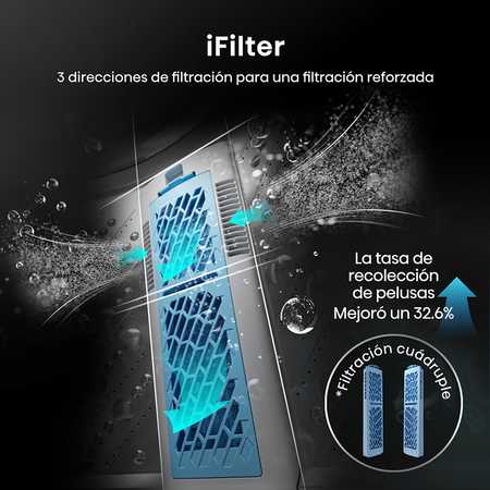 Recoge pelusas en 3 direcciones, con un diseño más ancho y largo, mejorando la eficacia de recolección en más de un 30% en comparación con los productos de la competencia; En comparación con otros filtros del mercado, ofrece un área de filtrado más amplia, lo que representa una ventaja significativa.