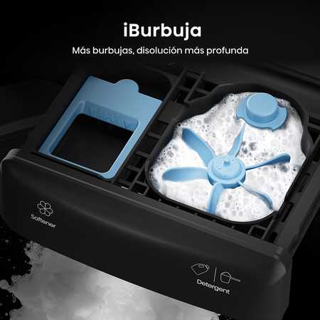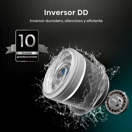 El motor inverter es más potente que los motores convencionales, lo que permite aumentar la intensidad del chorro de agua y la relación de parada y giro. Además, hemos optimizado el algoritmo de lavado para que el detergente penetre profundamente en los tejidos. Esta tecnología mejora la eficacia del lavado sin necesidad de tiempo adicional.