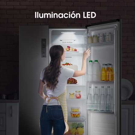La suave iluminación LED, una iluminación altamente eficiente, permite una visión más clara y profunda del contenido del refrigerador. Ilumina cada rincón del frigorífico y te facilita encontrar tus comidas favoritas.