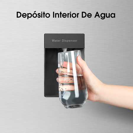 El nuevo diseño del dispensador de agua es minimalista y muy delgado, se integra perfectamente con la puerta y ahorra más espacio para los alimentos.
