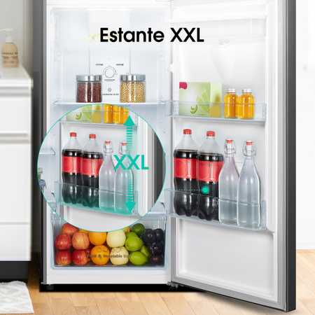 Los bolsillos de las puertas son lo suficientemente espaciosos para guardar botellas grandes, lo que hace que el refrigerador tenga más capacidad que la mayoría.