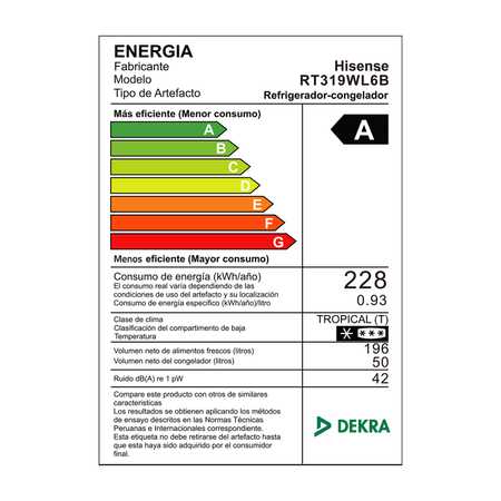 Refrigeradora 246L Top mount inverter RT319WL6B Hisense