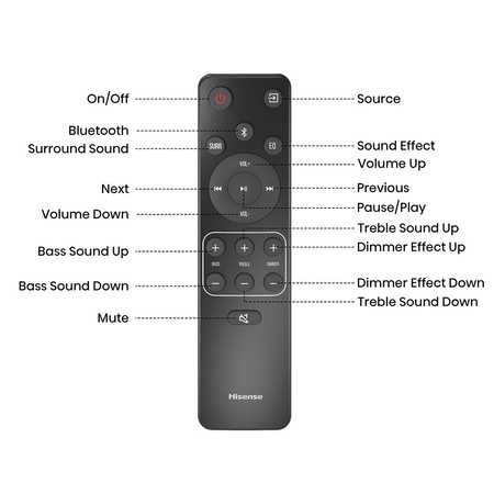 La barra de sonido Hisense ofrece hasta 240W de potencia para un audio claro, envolvente y lleno de vida.