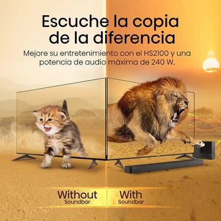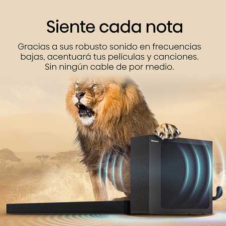 Con la Hisense HS2100 y sus 240W de potencia, cada diálogo, nota y efecto cobran vida con un audio envolvente.