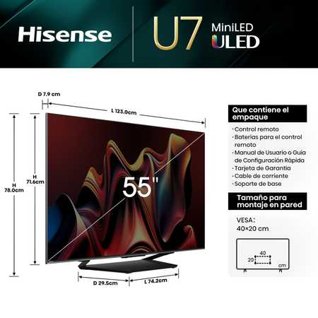 TV Hisense QLED MiniLED 55" 4K 55U7N Google TV (2024)