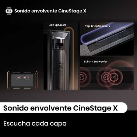 ¿Cansado de un audio plano? CineStage X Surround te envuelve con 4.2.2 que transforman tu sala, en un cine. Sin necesidad de equipos extra.
